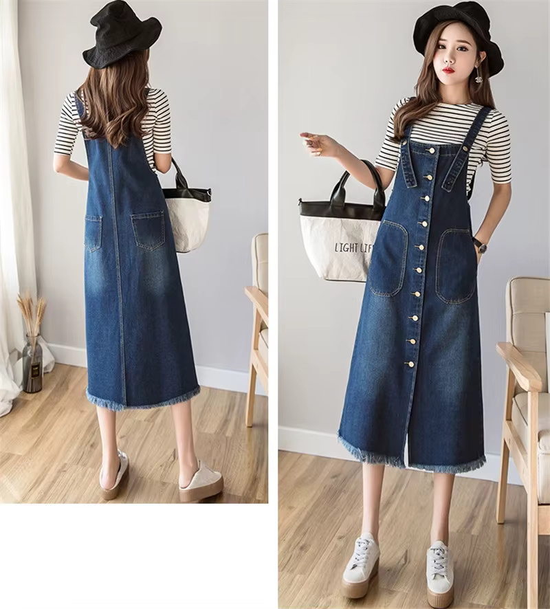 La robe salopette jean est idéale pour la mi-saison comme pour l’été. Elle peut être superposée avec un haut léger ou portée seule selon la météo.