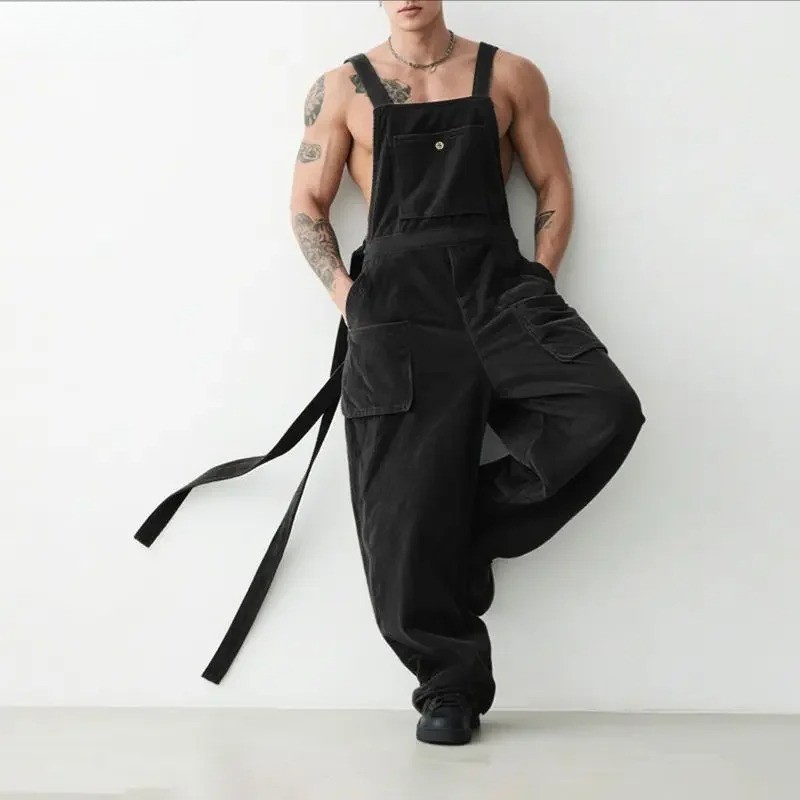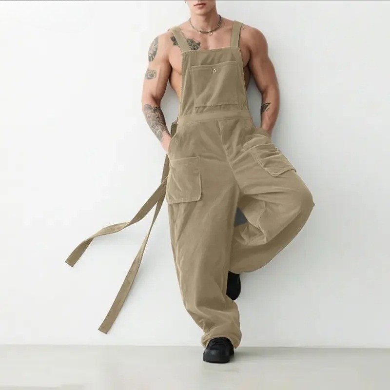 Un jumpsuit type salopette dédiée aux hommes en velours confortable