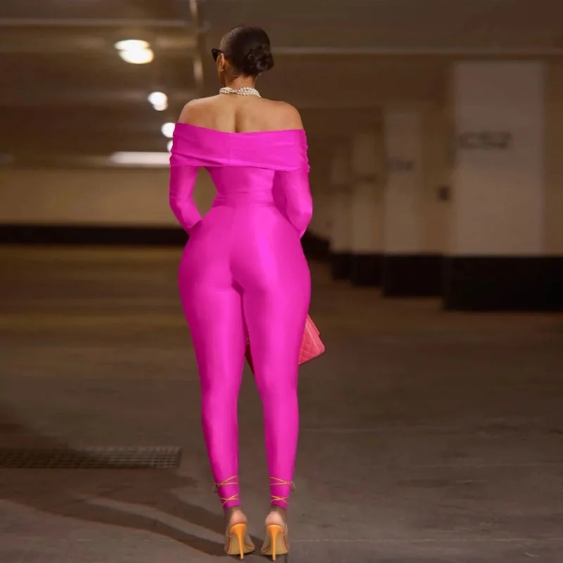 Cette combinaison chic rose femme s’adapte aussi bien avec des chaussures habillées qu’avec des éléments plus casual. Sa coupe ajustée et ses détails discrets permettent de varier les styles tout en conservant une identité visuelle forte.